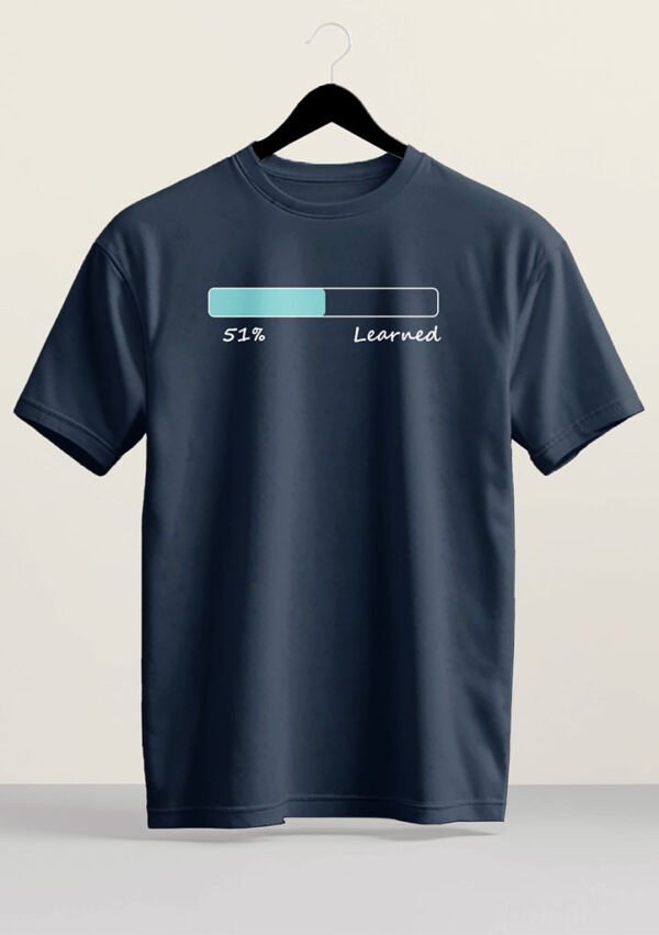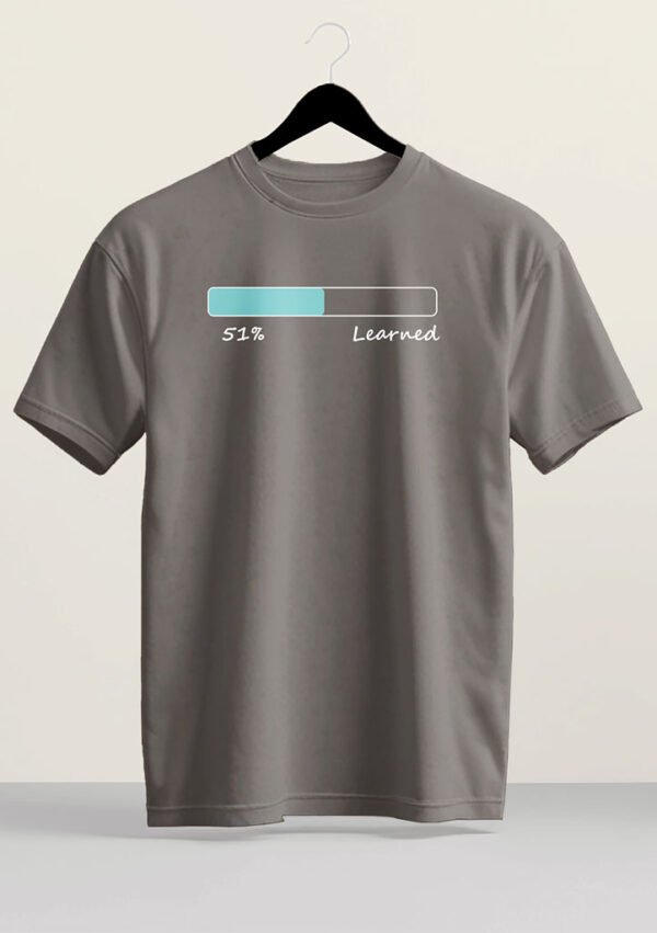 Minimalist progress bar graphic t-shirt featuring the phrase “51% Learned.” A clean and modern design representing growth, learning, and self-improvement.