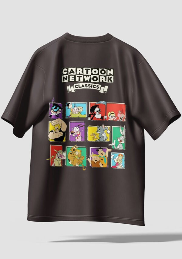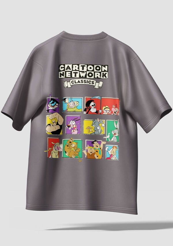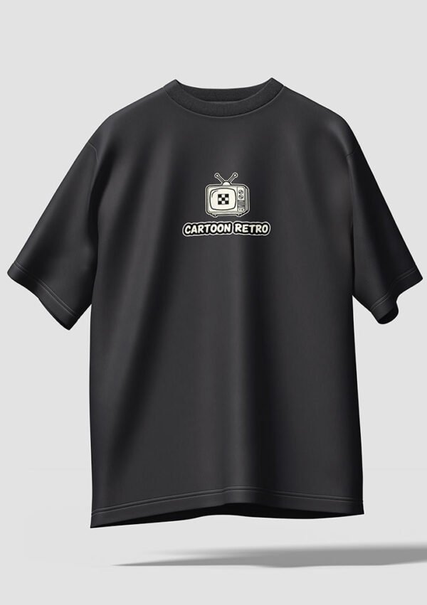 Retro cartoon inspired graphic t-shirt with front minimal TV icon and bold cartoon grid artwork on the back. A perfect Gen-Z streetwear piece combining nostalgia and modern style.