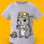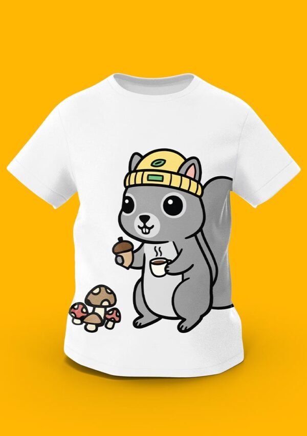 Get ready for a crisp morning adventure with the “Cozy Squirrel” tee! Featuring a cute grey squirrel wearing a yellow beanie, holding a tiny cup of coffee and an acorn near a patch of mushrooms, this design is perfect for little nature lovers. Crafted from premium 100% Organic Combed Cotton, it provides a soft, warm-hug feel for all-day comfort.