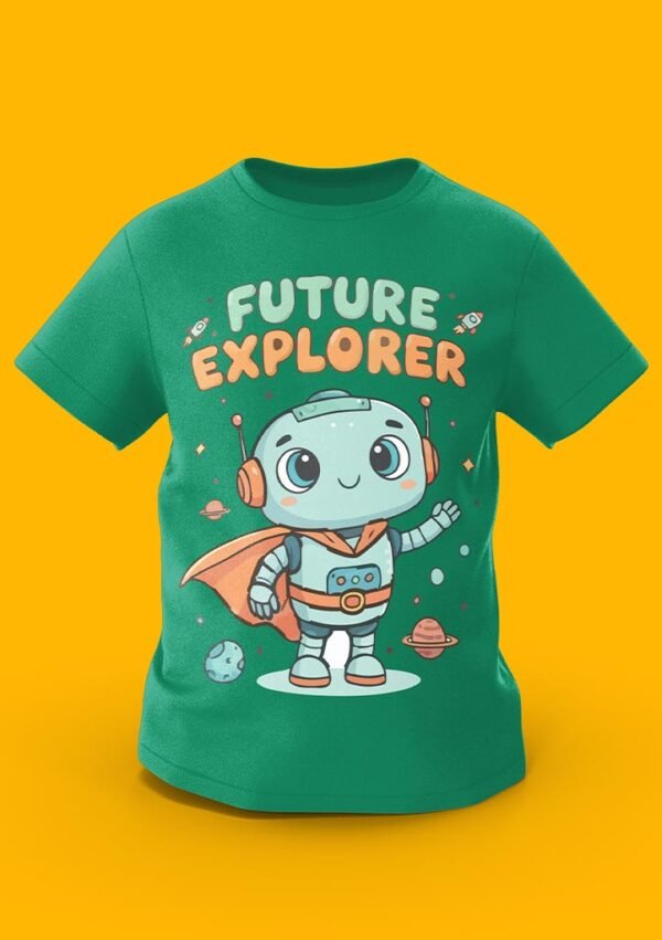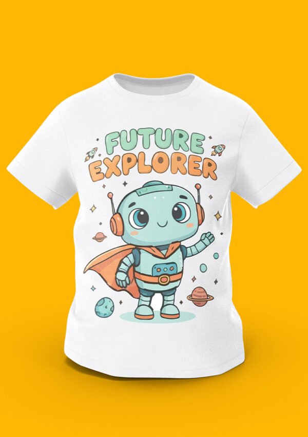 Launch their imagination into orbit with this “Future Explorer” tee. Featuring a friendly hero robot exploring a galaxy of planets and stars, this shirt is perfect for little science lovers and space enthusiasts. Crafted from premium 100% Organic Combed Cotton, it offers a soft, out-of-this-world fit for every daily mission.