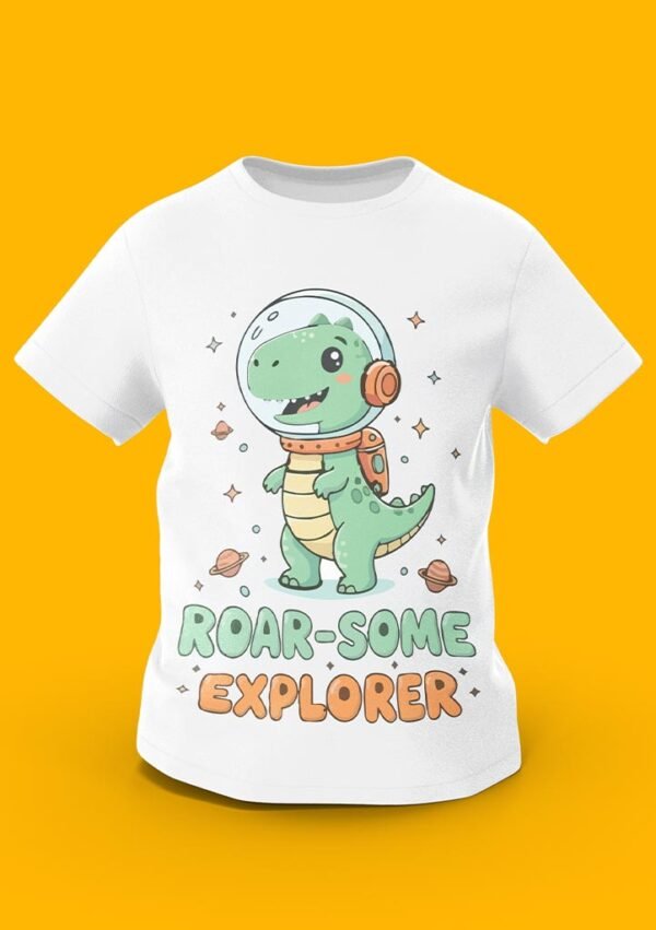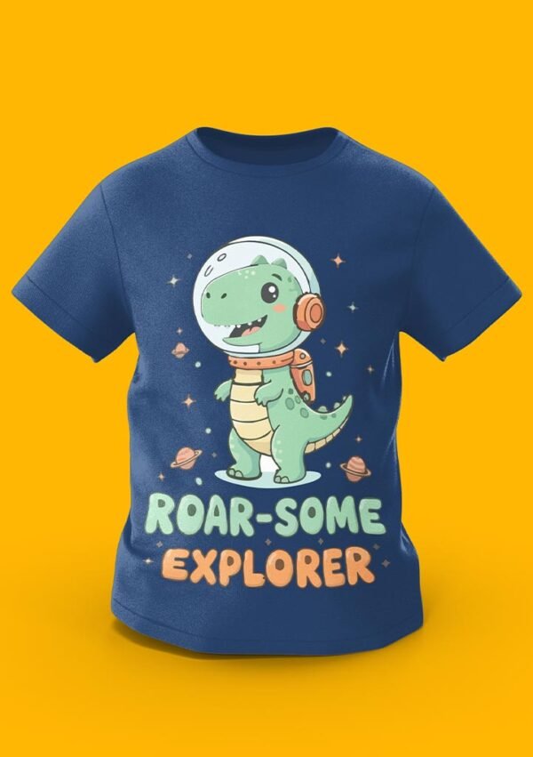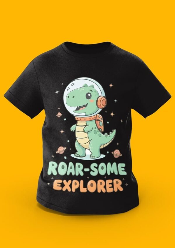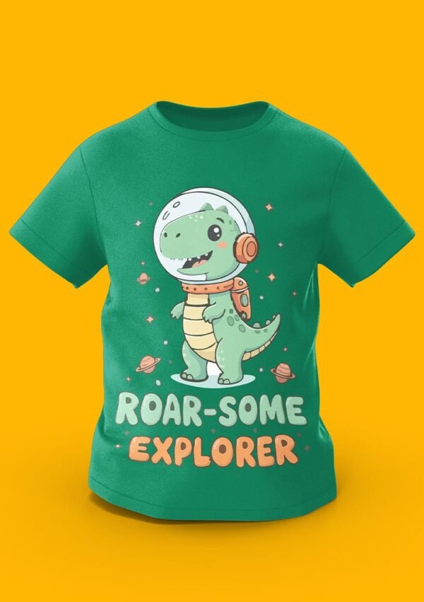 Take a prehistoric journey to the stars with the “Roar-Some Explorer” tee! Featuring a cute green T-Rex in a space helmet exploring a galaxy of planets, this design is perfect for little ones who love both dinosaurs and outer space. Crafted from premium 100% Organic Combed Cotton, it offers a soft, out-of-this-world fit for every daily discovery.