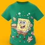 Dive into deep-sea fun with the “Spongebob Treats” tee! Featuring everyone’s favorite sponge surrounded by Krabby Patties, lollipops, and his best pal Patrick, this vibrant design captures the joy. Crafted from premium 100% Organic Combed Cotton, it provides an ultra-soft and breathable fit for all-day play under the sun (or the sea!).