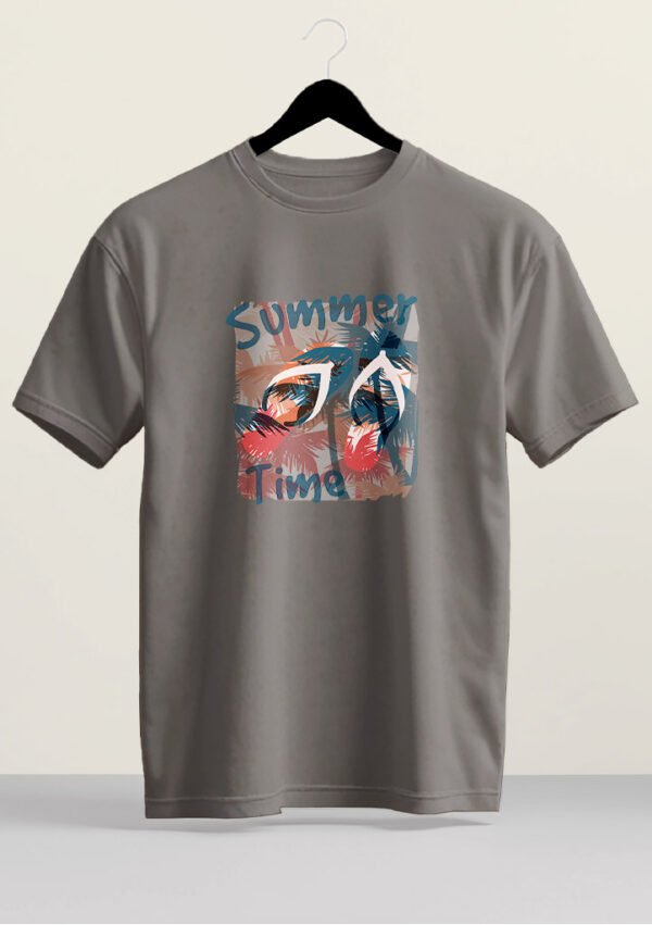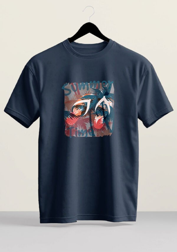 Dive into vacation mode with this lush palm leaf and flip-flop design, blending cool navy tones with sunset coral.