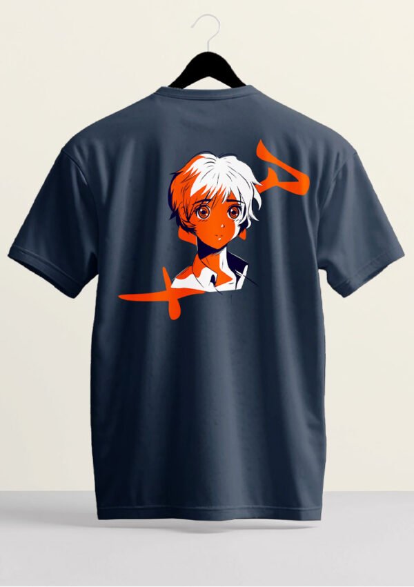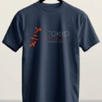 A premium streetwear piece for the true fan. This tee features a minimalist “Tokyo” typographic print on the chest and a striking, large-scale anime character illustration on the back. The high-contrast orange and white palette on Navy cotton captures the neon energy of the city.