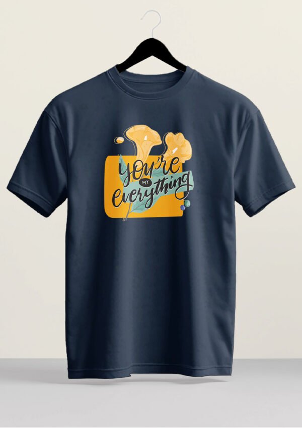 Express your heart with this elegant floral design. Featuring hand-lettered “You’re My Everything” script over a backdrop of blooming yellow lilies, this tee combines romantic sentiment with a modern, artistic layout.