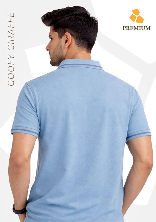 GoofyGiraffe”Premium Stripe Collar” Sky Blue Polo T-Shirt
