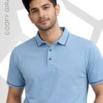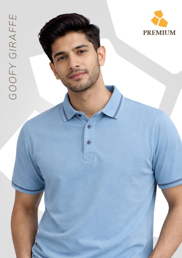 Refresh your wardrobe with the Premium Sky Blue Stripe Collar Polo T-Shirt from GoofyGiraffe. Crafted from high-quality double lacoste fabric, this polo delivers a breathable yet structured feel ideal for all-day wear. The clean minimal design is elevated with subtle contrast stripe detailing on the collar and sleeve edges, adding a refined and modern touch. The soft sky blue tone brings a fresh and sophisticated vibe, perfect for daytime outings, office wear, or casual styling. Built for those who prefer effortless elegance with premium comfort.