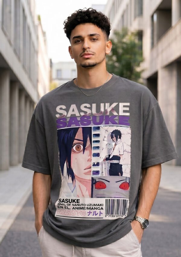 Step into the darker side of anime with the Sasuke Statement Drop Shoulder T-Shirt. Featuring a bold manga-style collage of Sasuke with intense visual panels and Sharingan-inspired tones, this design is built for fans who want to stand out. The oversized fit enhances streetwear aesthetics while the clean back keeps balance.